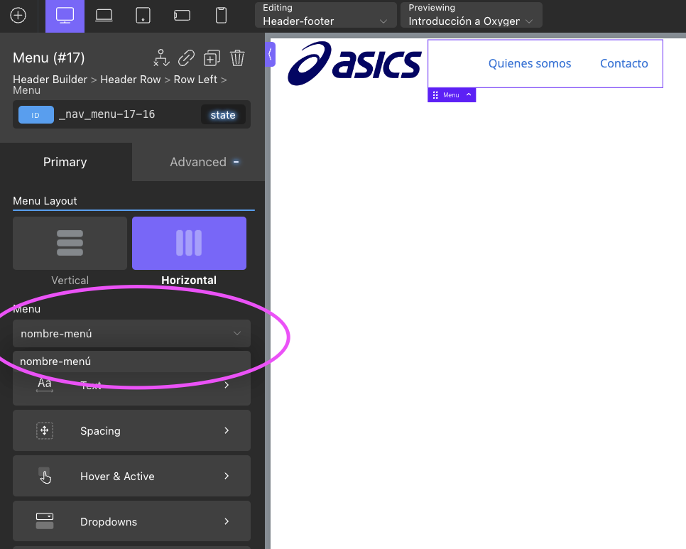 Aquí es donde podemos seleccionar el menú que acabamos de montar.