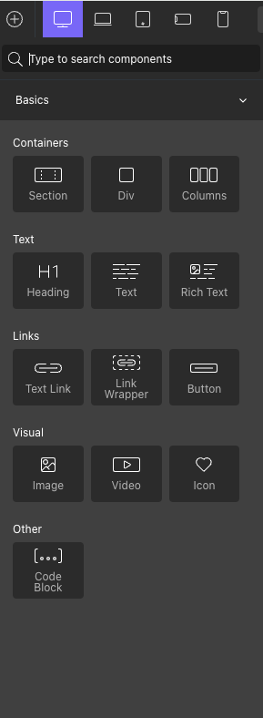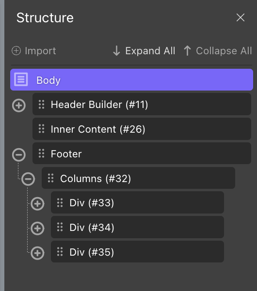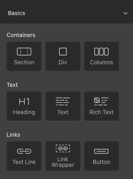Todos los elementos de las estructura los vamos a encontrar en el sidebar de la izquierda y se pueden añadir con el símbolo +.