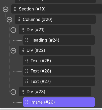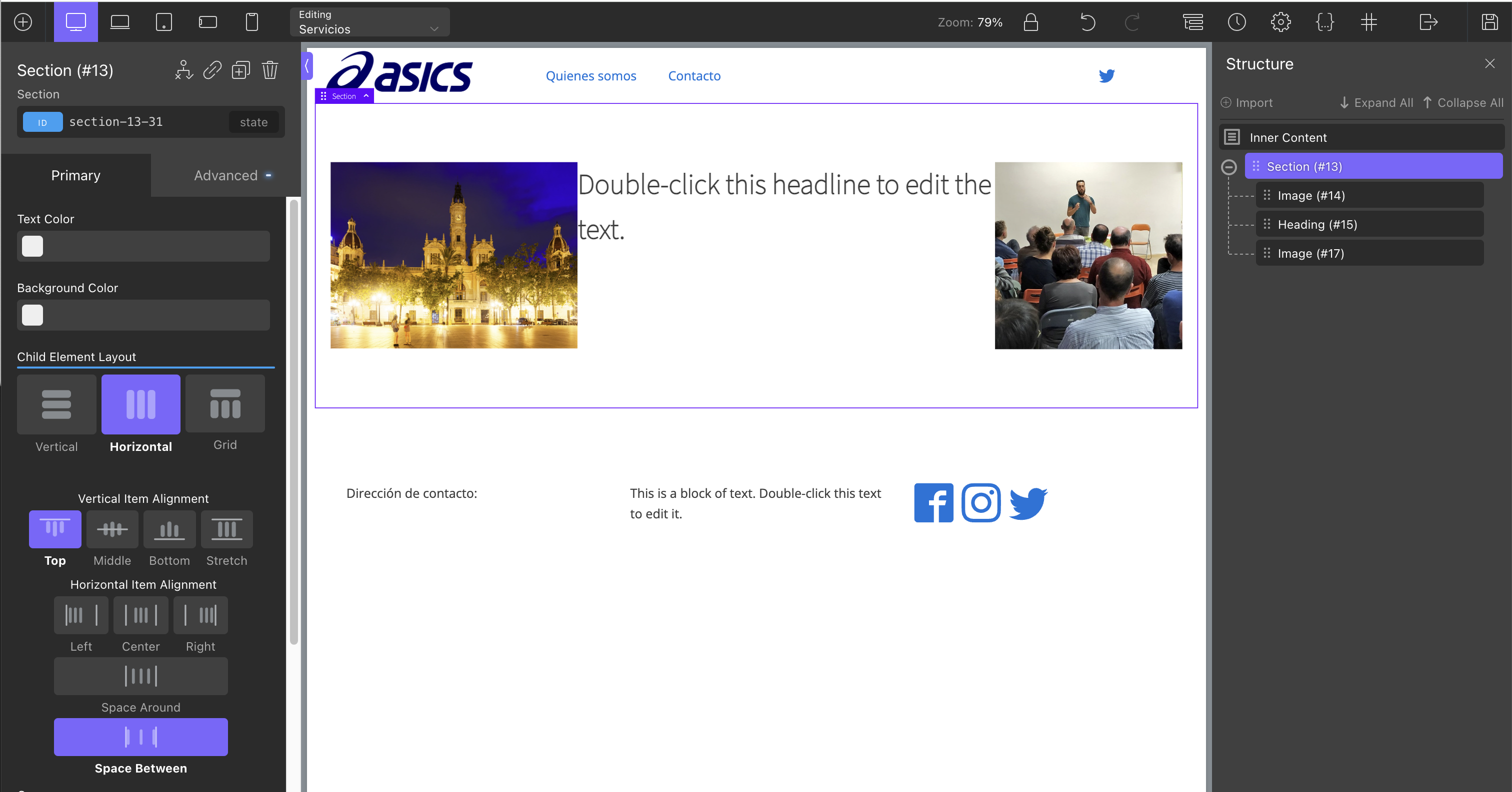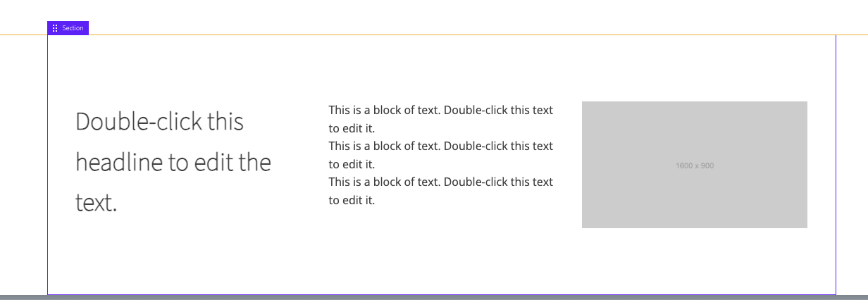 Por ejemplo montaríamos un section + Columns y dentro de cada columna colocaremos H1, text, image,... según nuestro diseño.
