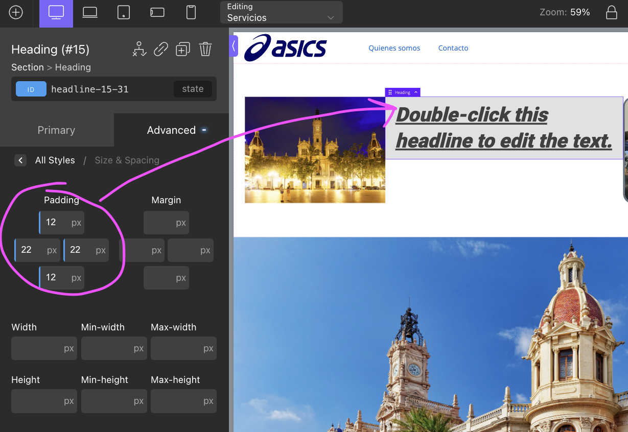 3- Aquí es donde podemos modificar el padding o margin según nuestro diseño.